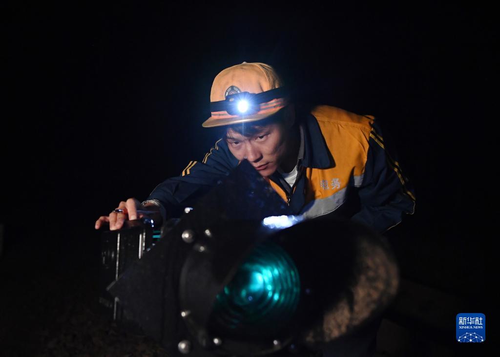 8月25日,嘉峪關(guān)電務(wù)段信號工宋健在蘭新鐵路玉石站軌道旁調試信號設備。
