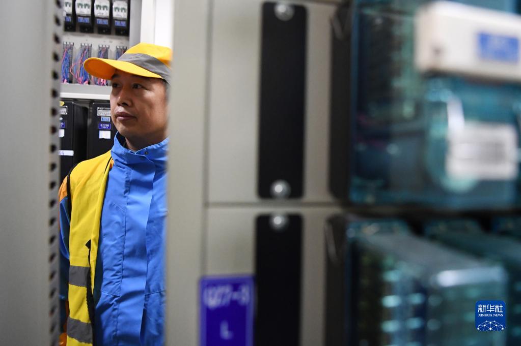 8月25日凌晨,中鐵八局電務(wù)公司工程師劉小俊在蘭新鐵路玉石站查看設備運行情況。