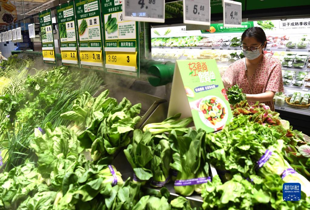 8月25日,市民在合肥市經(jīng)開(kāi)區芙蓉社區一家超市選購“惠民菜”。