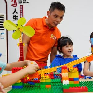 8月24日,在重慶豐都縣高家鎮汶溪社區黨群服務(wù)中心內,一名家庭教育互助會(huì )的志愿者在指導孩子體驗兒童機器人。