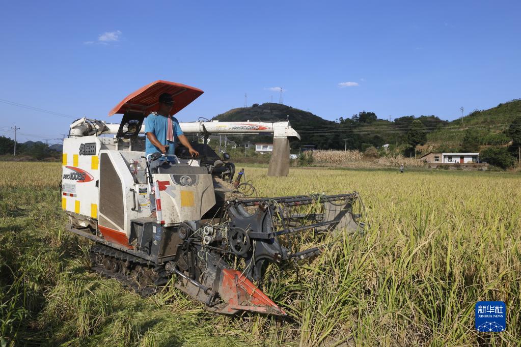 8月24日,在高縣慶嶺鎮先娛村,村民操作收割機收獲水稻。