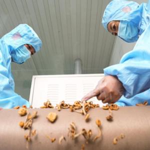 在黑龍江省大興安嶺地區加格達奇區一家山野珍品科技開(kāi)發(fā)企業(yè),工人對林下綠色有機食品進(jìn)行加工作業(yè)(8月24日攝)。