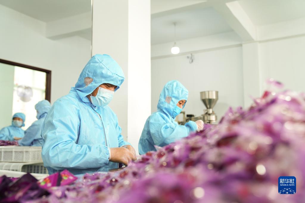 在黑龍江省大興安嶺地區加格達奇區一家山野珍品科技開(kāi)發(fā)企業(yè),工人對林下綠色有機食品進(jìn)行加工作業(yè)(8月24日攝)。
