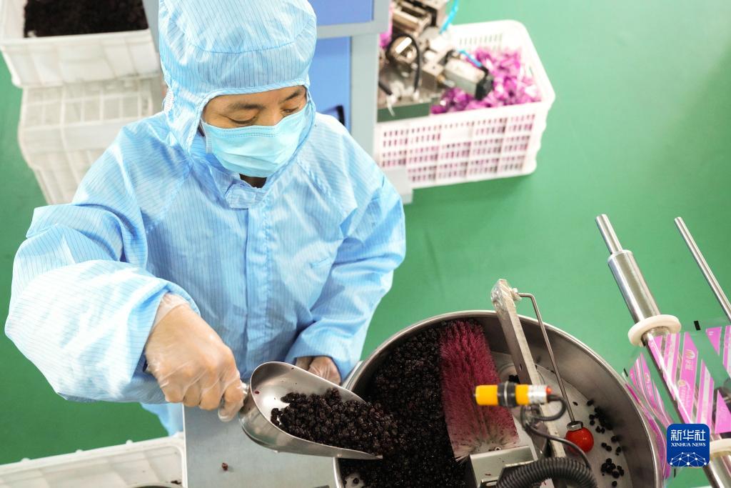 在黑龍江省大興安嶺地區加格達奇區一家山野珍品科技開(kāi)發(fā)企業(yè),工人對林下綠色有機食品進(jìn)行加工作業(yè)(8月24日攝)。