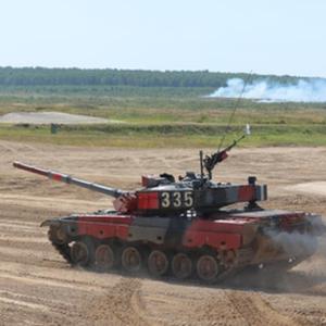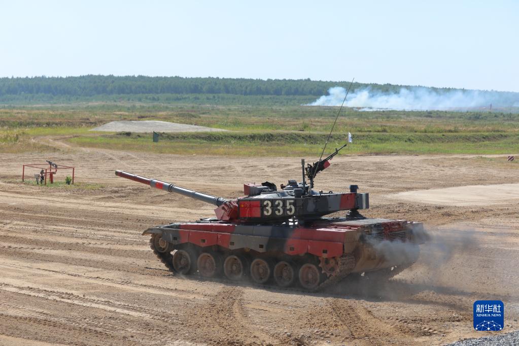 8月24日,在俄羅斯莫斯科州阿拉比諾靶場(chǎng),中國參賽隊96B坦克在比賽中。