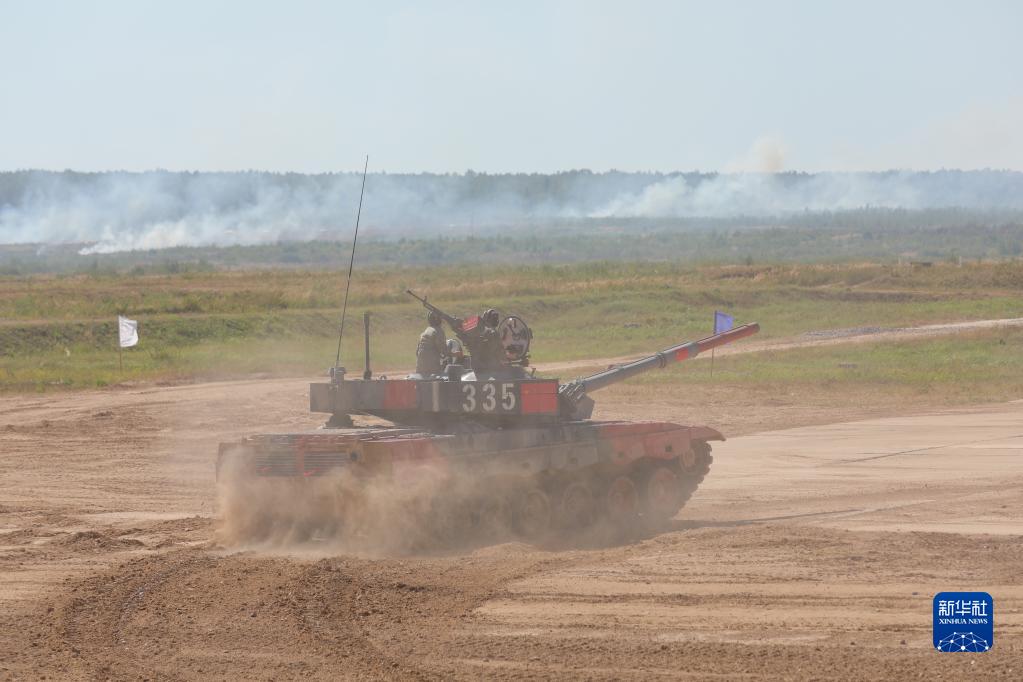 8月24日,在俄羅斯莫斯科州阿拉比諾靶場(chǎng),中國參賽隊96B坦克在比賽中。 新華社發(fā)(羅坤攝)