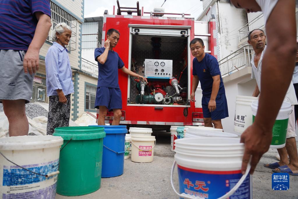 消防員在瑞昌市范鎮中源村送水(8月23日攝)。