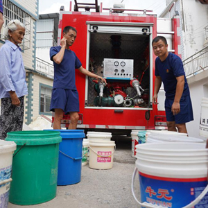 消防車(chē)每天需要趕赴五六個(gè)村莊送水,往往要從早上六點(diǎn)忙到晚上九、十點(diǎn),目前已經(jīng)堅持一個(gè)多月時(shí)間。