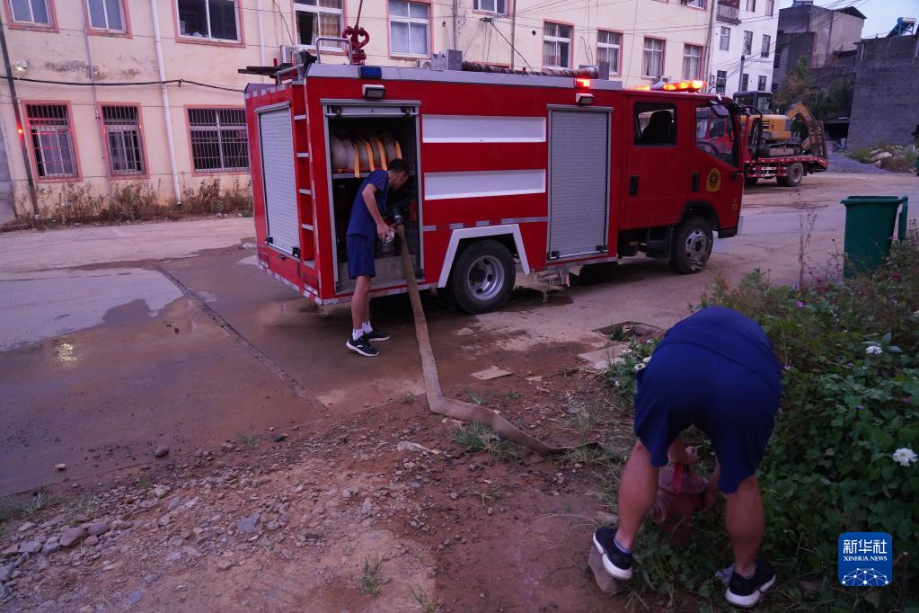 消防員在消防站加水,為保障隨時(shí)出任務(wù),他們總是一返回消防站就先給車(chē)加滿(mǎn)水(8月23日攝)。