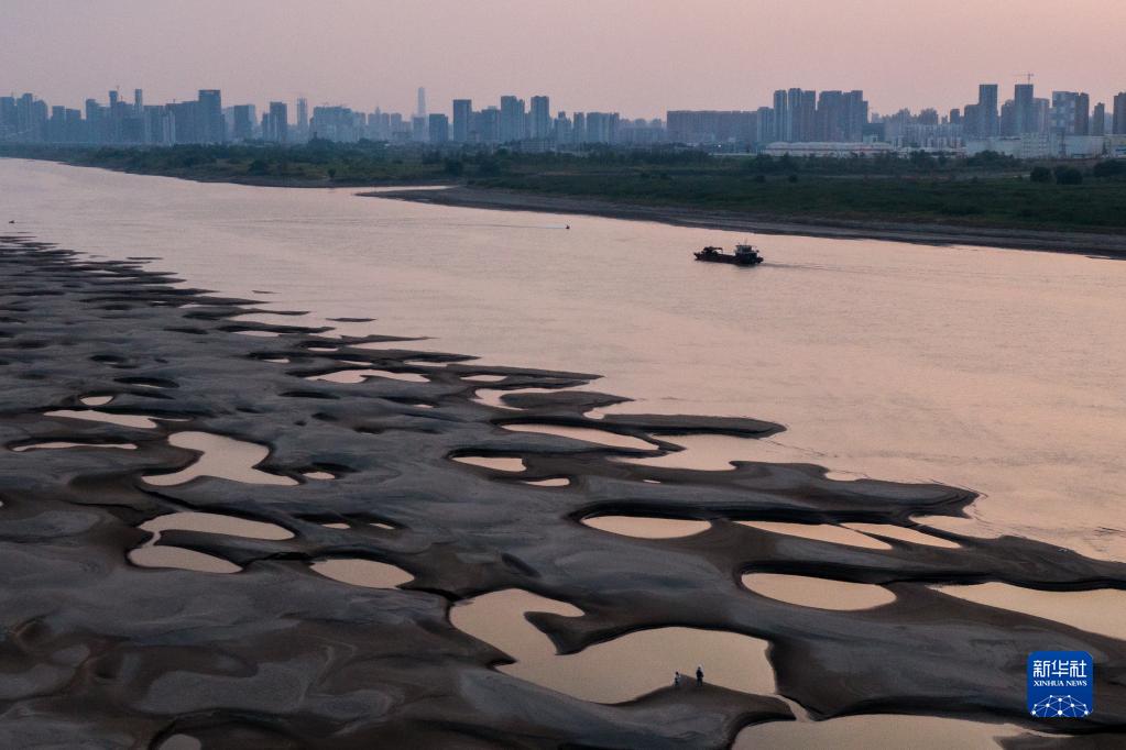 近日,長(cháng)江武漢段水位持續降低,武漢市天興洲露出大片灘涂。