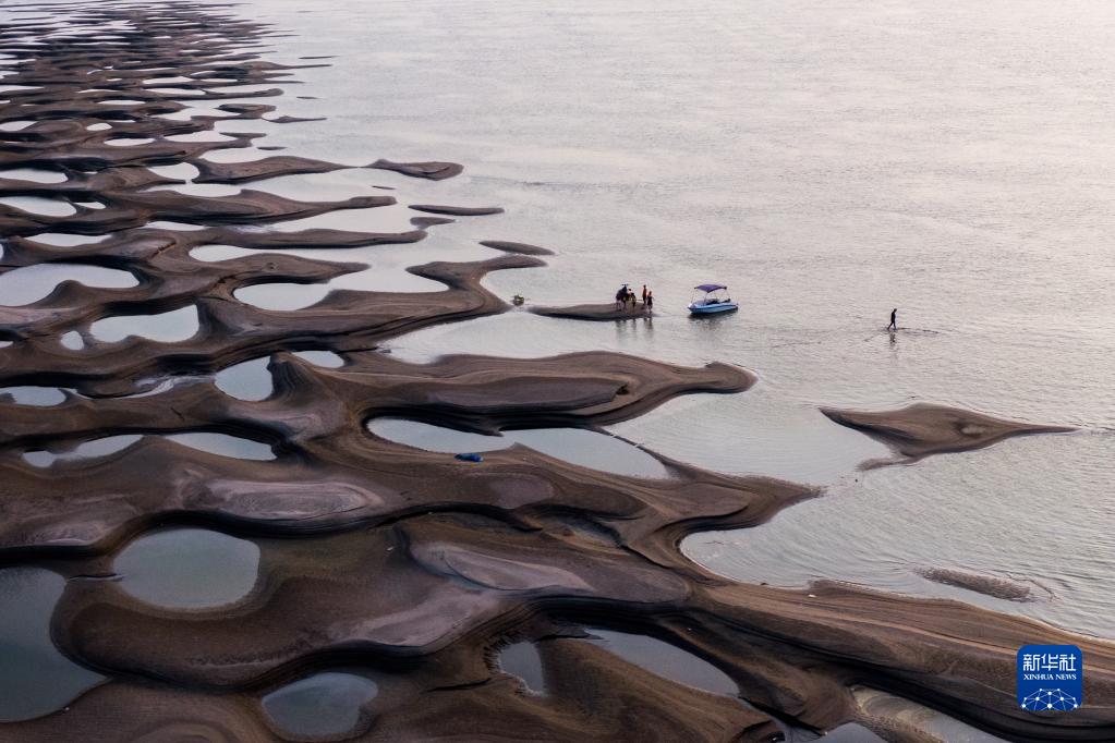 近日,長(cháng)江武漢段水位持續降低,武漢市天興洲露出大片灘涂。