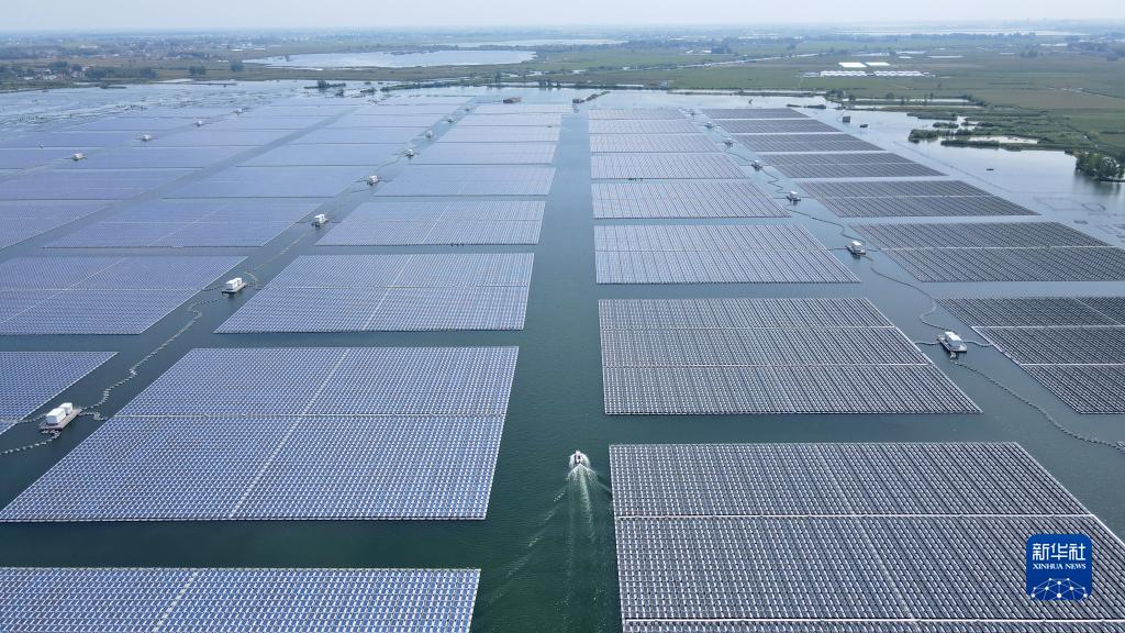8月25日拍攝的潁上縣毛圩水上光伏電站(無(wú)人機照片)。