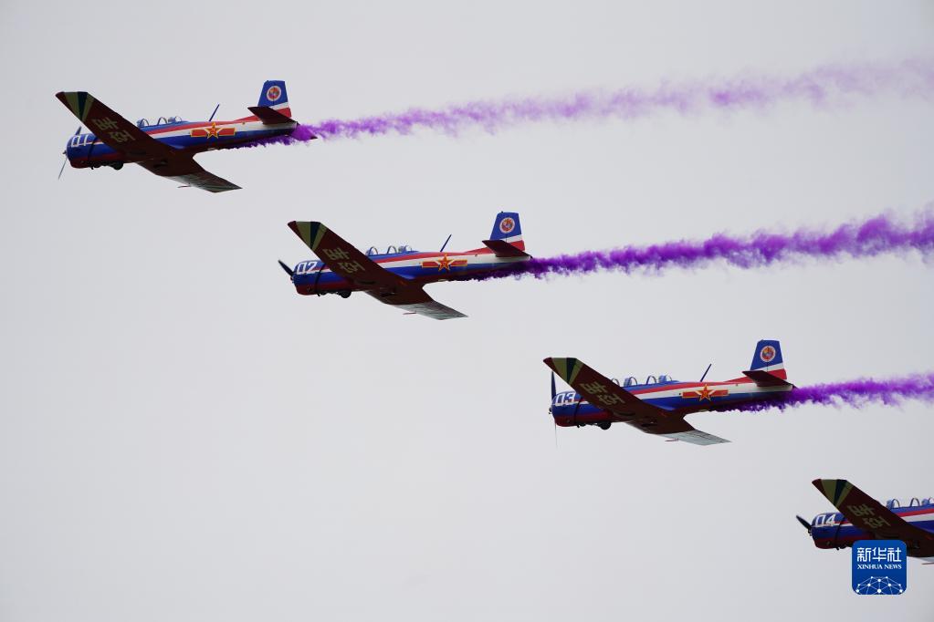 8月26日,在空軍航空開(kāi)放活動(dòng)暨長(cháng)春航空展上,空軍航空大學(xué)“天之翼”飛行表演隊編隊飛行。