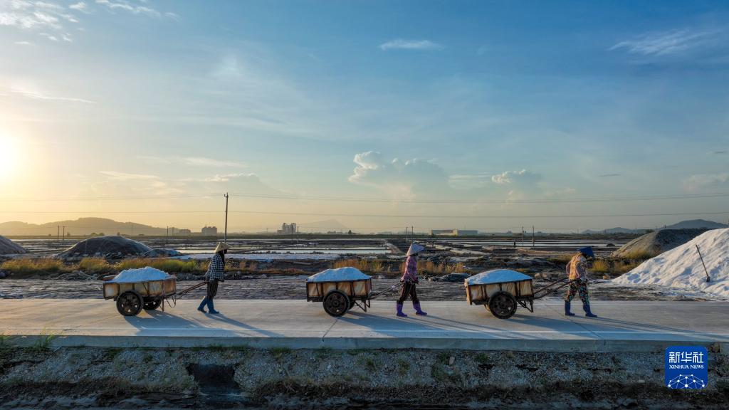 莆田鹽場(chǎng)位于福建省莆田市秀嶼區東嶠鎮,擁有鹽田面積10.2萬(wàn)公畝,年產(chǎn)優(yōu)質(zhì)海鹽8.5萬(wàn)噸。今年以來(lái),莆田鹽場(chǎng)已累計產(chǎn)鹽5萬(wàn)多噸。目前,莆田鹽場(chǎng)又進(jìn)入收獲時(shí)節,工人們利用晴好天氣加緊收獲海鹽。