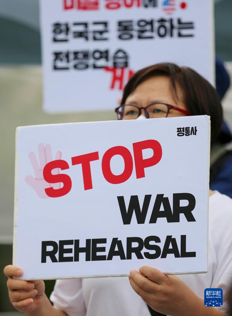 韓美啟動(dòng)聯(lián)合軍演 韓民間團體集會(huì )抗議