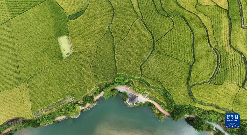 初秋,貴州省貴陽(yáng)市開(kāi)陽(yáng)縣禾豐鄉馬頭村近千畝優(yōu)質(zhì)稻谷長(cháng)勢喜人,田園、村莊、河流、鄉村公路組成一幅貴州高原獨特的田園豐收畫(huà)卷。