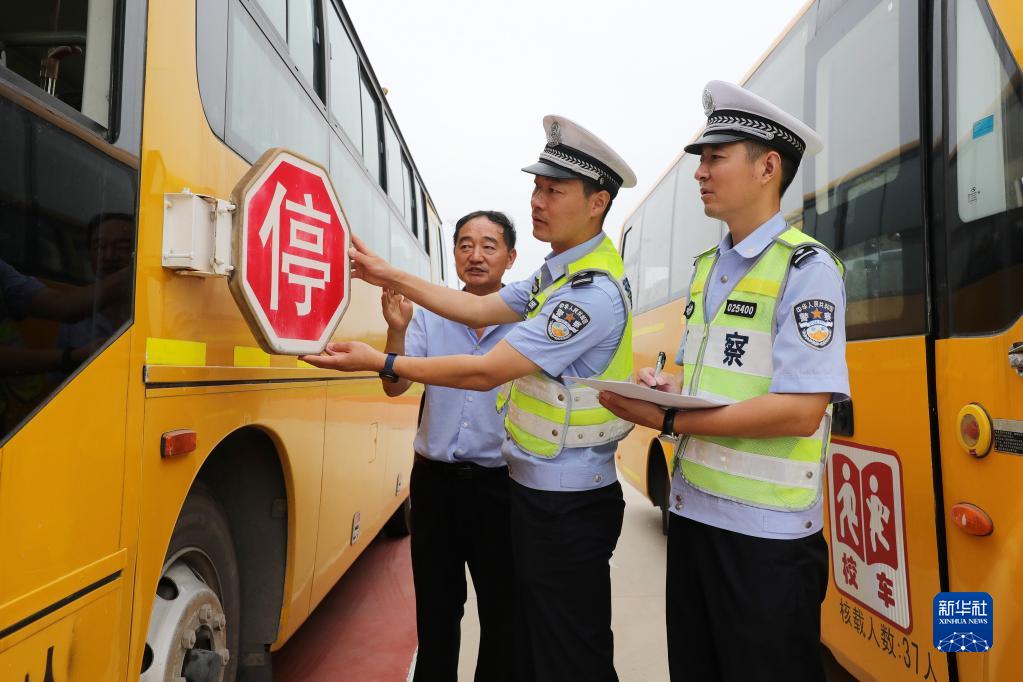 新學(xué)期開(kāi)學(xué)在即,安徽省淮北市開(kāi)展校車(chē)安全專(zhuān)項大檢查,組織交警和相關(guān)技術(shù)人員對轄區校車(chē)信息資料、校車(chē)司機駕駛資格、校車(chē)安全性能、防疫措施和隨車(chē)配備的安全應急器材設備等逐一檢查,消除校車(chē)安全隱患,確保學(xué)生乘車(chē)安全。