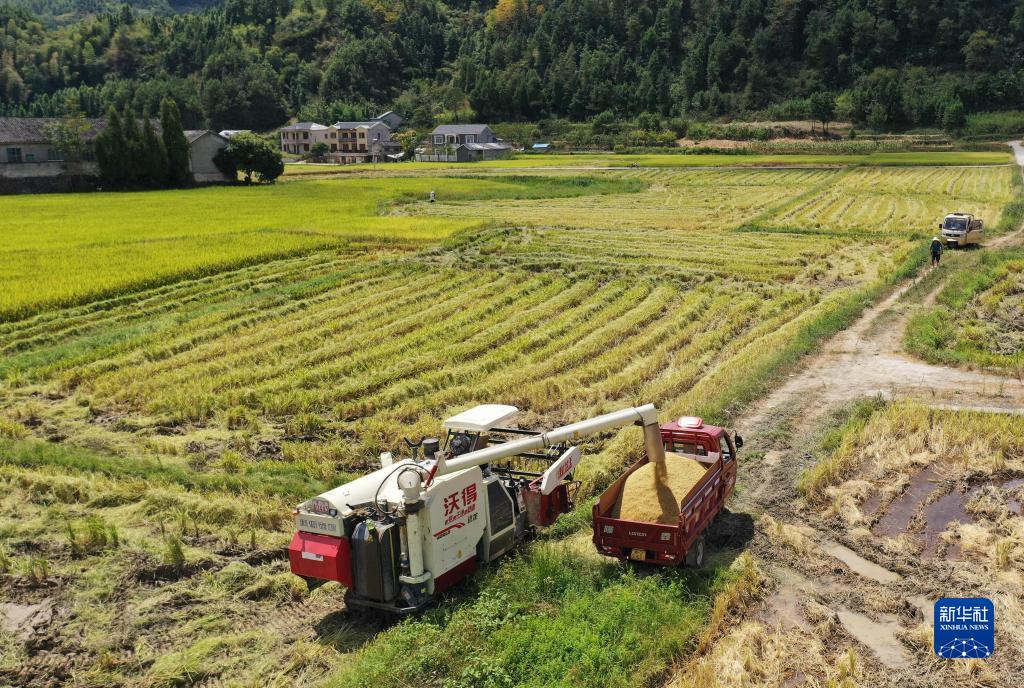 連日來(lái),湖南張家界市永定區合作橋鄉種植的水稻進(jìn)入成熟收割期,當地農民加緊收割,確保顆粒歸倉。