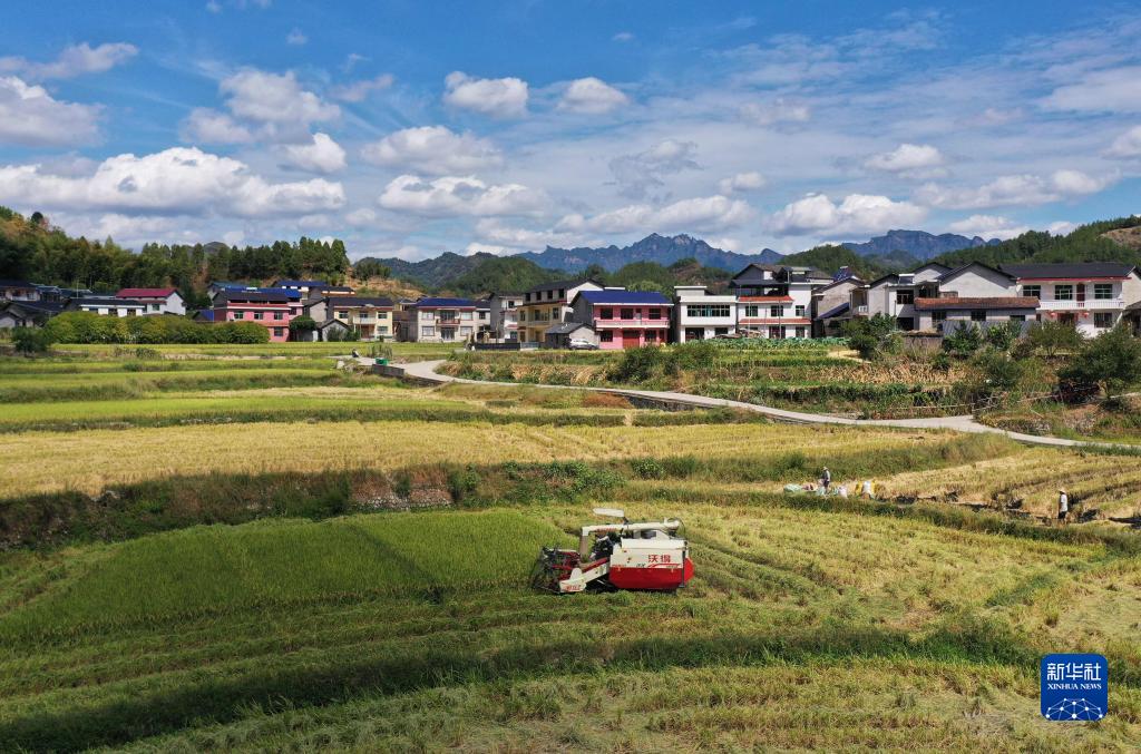 連日來(lái),湖南張家界市永定區合作橋鄉種植的水稻進(jìn)入成熟收割期,當地農民加緊收割,確保顆粒歸倉。