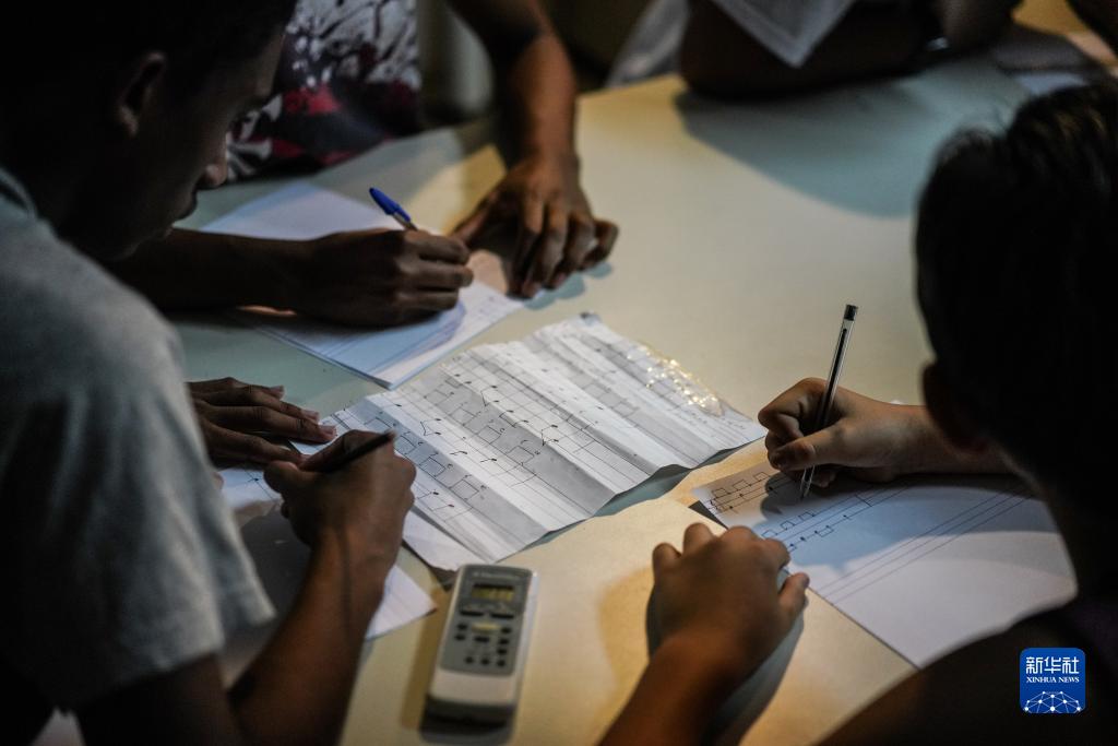 8月25日,在巴西里約熱內盧西區“上帝之城”社區,學(xué)生們在“彈奏聲音”教室中上課。新華社記者 王天聰 攝