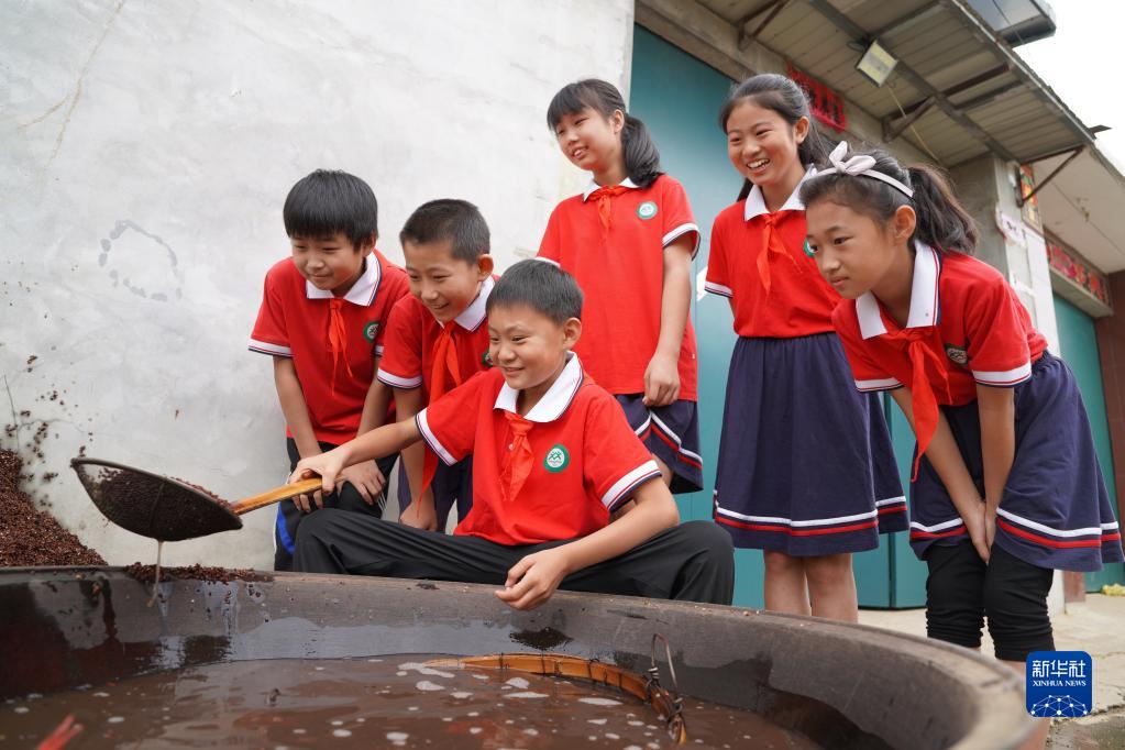 8月27日,河北省邢臺市內丘縣柳林鎮明德小學(xué)學(xué)生在體驗酸棗仁加工技藝。
