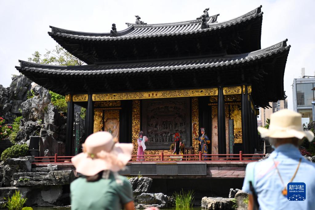 2022年8月21日,在位于廣州永慶坊的粵劇藝術(shù)博物館,游客觀(guān)看粵劇表演。