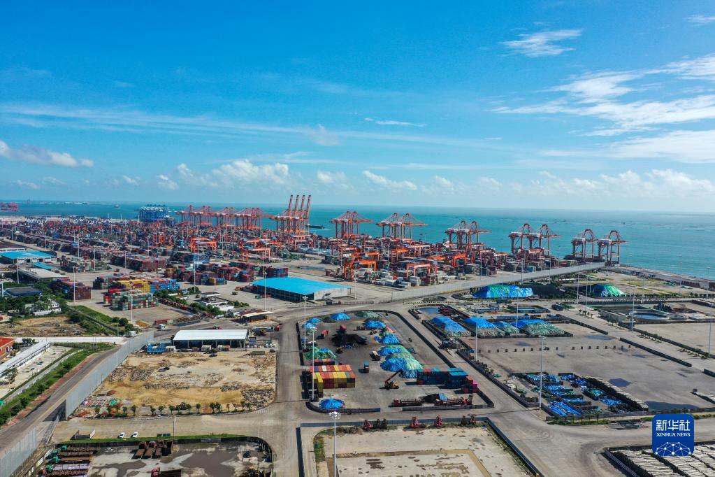 這是8月27日拍攝的位于平陸運河出??诟浇谋辈繛掣蹥J州港區大欖坪作業(yè)區(無(wú)人機照片)。