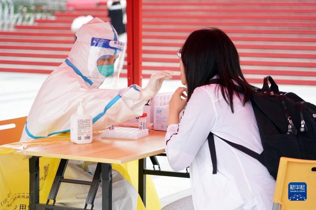 8月28日,醫護人員為北京大學(xué)2022級本科新生進(jìn)行核酸采樣。