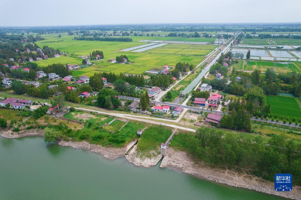 這是8月25日拍攝的湖南省常德市安鄉縣三岔河鎮肖公咀泵站附近的景色(無(wú)人機照片)。