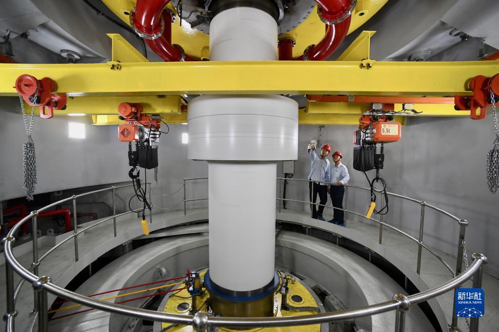 8月28日,福建周寧抽水蓄能電站地下廠(chǎng)房運維人員在檢查設備。