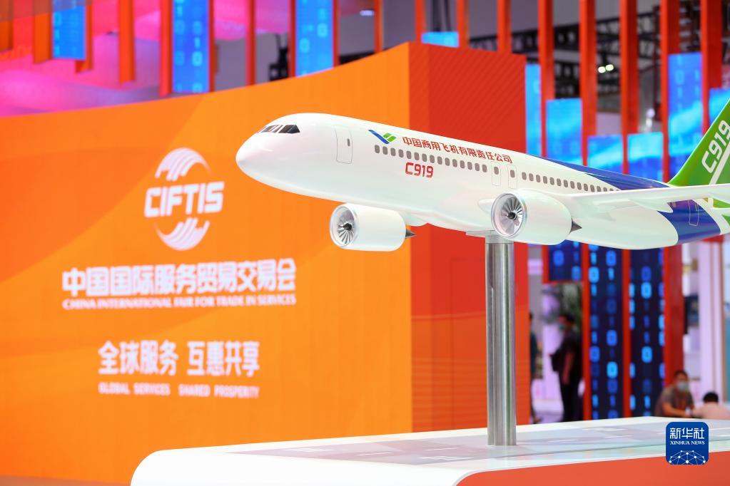 8月28日在國家會(huì )議中心拍攝的C919飛機模型。
