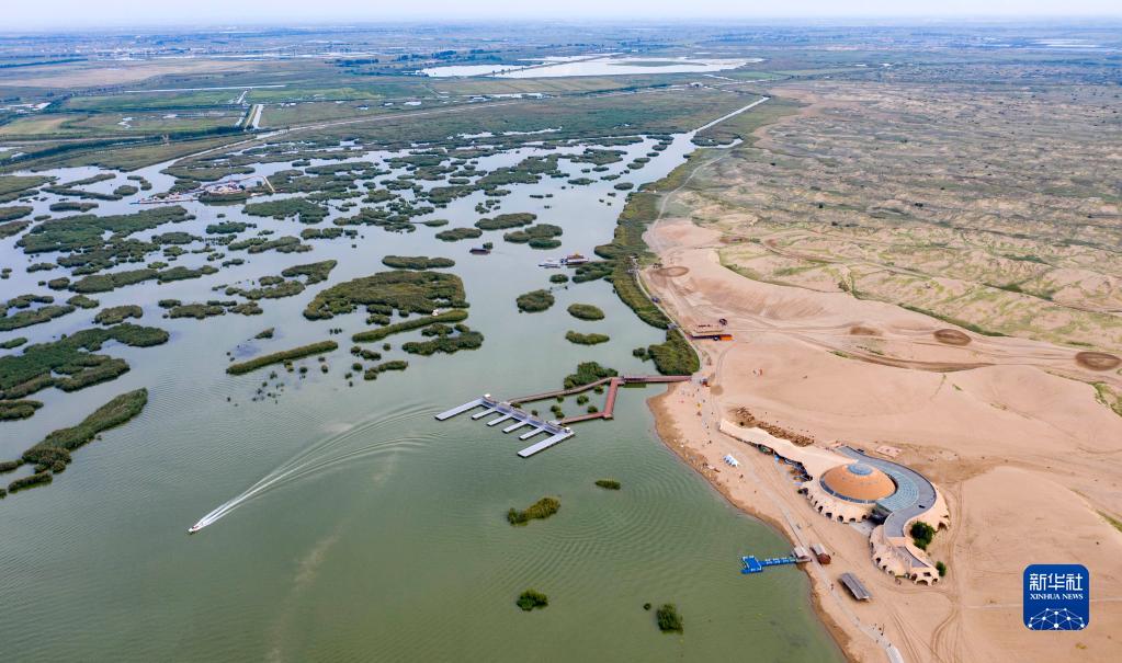 這是8月28日拍攝的寧夏沙湖景區(無(wú)人機照片)。