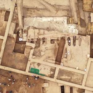 俯瞰南佐遺址核心區大型宮殿建筑發(fā)掘現場(chǎng)(8月23日攝,無(wú)人機照片)。