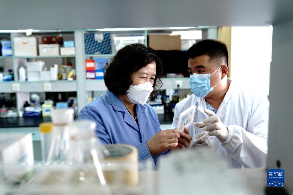 8月29日,在中國科學(xué)院分子植物科學(xué)卓越創(chuàng )新中心實(shí)驗室,鄭慧瓊研究員(左)和學(xué)生交流實(shí)驗結果。新華社記者 張建松 攝