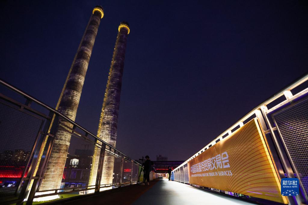 這是8月29日在服貿會(huì )媒體探營(yíng)活動(dòng)中拍攝的首鋼園區夜景。