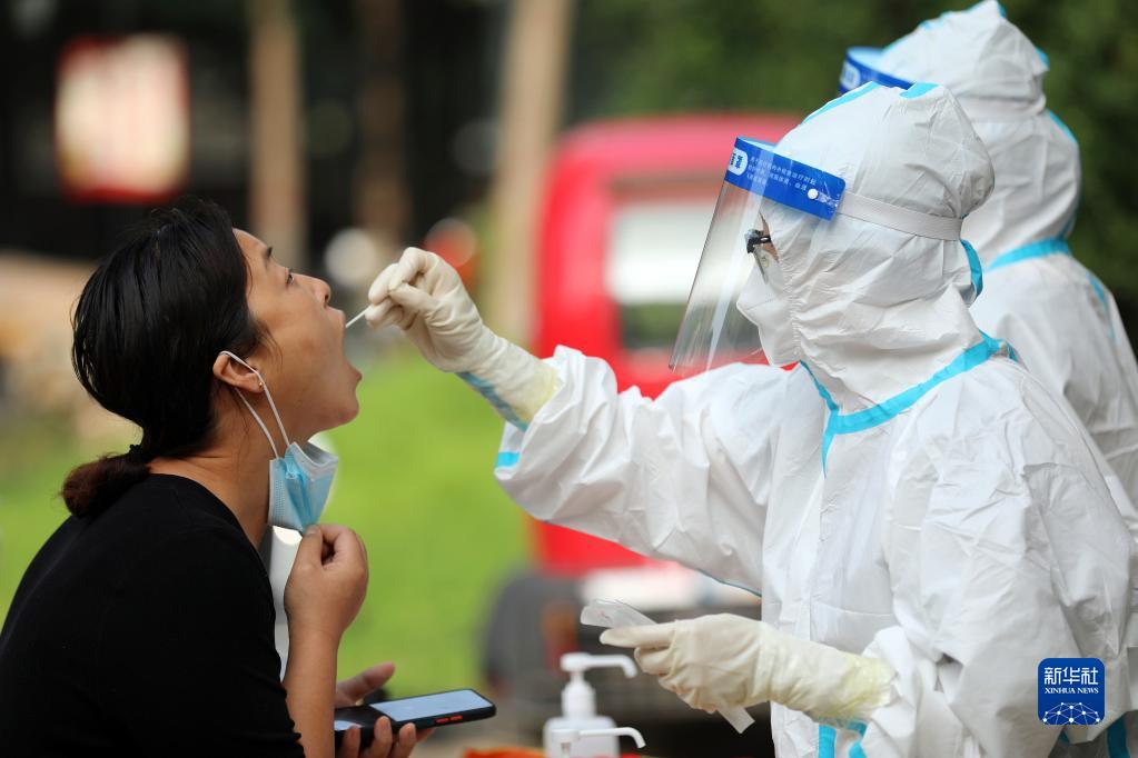 8月30日,在石家莊市眾美綠都小區核酸采樣點(diǎn),市民接受核酸采樣。