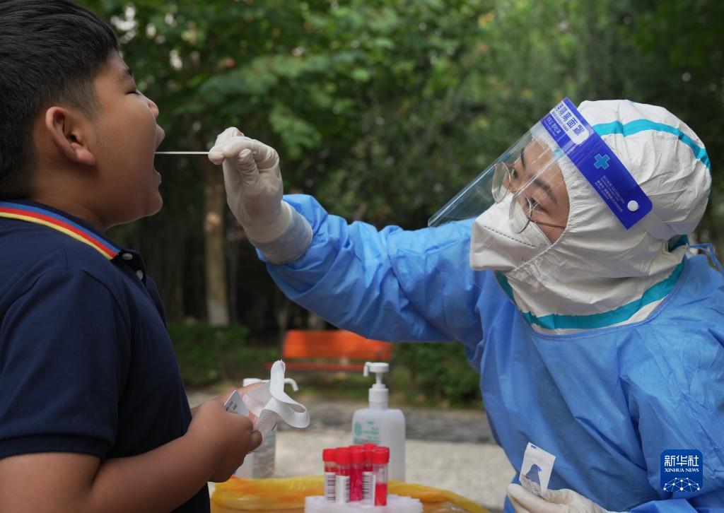 8月30日,醫務(wù)人員在石家莊市裕華區九里庭院社區為群眾進(jìn)行核酸采樣。