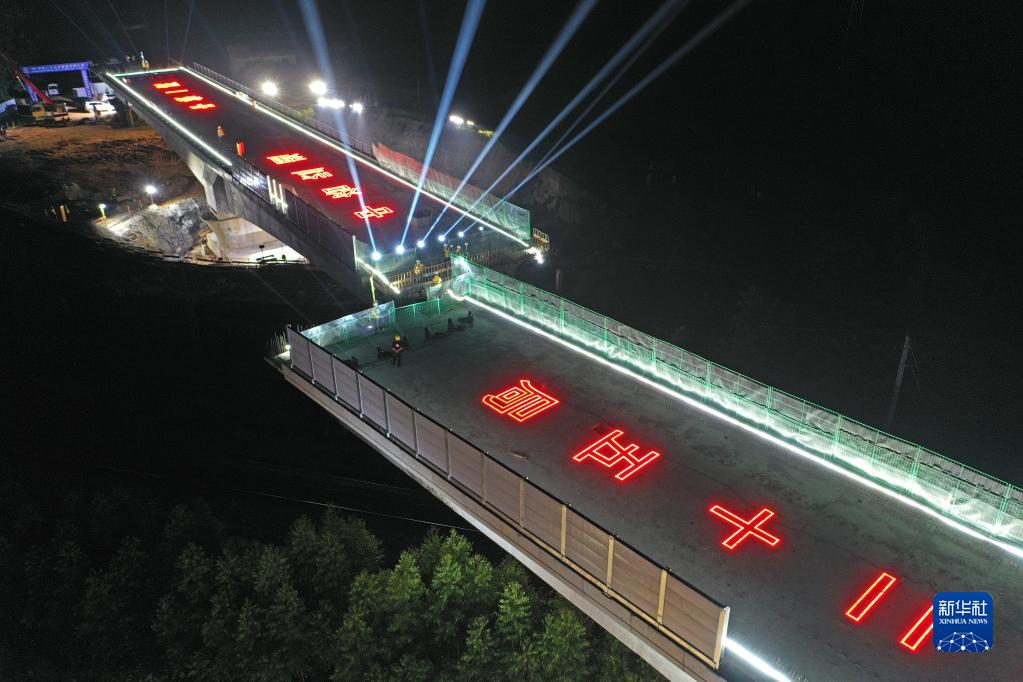 當日,廣西南(寧)玉(林)鐵路全線(xiàn)最大噸位雙幅轉體橋——福慶特大橋跨湘桂鐵路轉體橋在順時(shí)針旋轉后成功對接,兩幅對接后的轉體橋成為上跨湘桂鐵路的空中走廊,標志著(zhù)南玉鐵路建設取得重大突破。福慶特大橋全長(cháng)945米,轉體部分的橋梁梁體總長(cháng)220米,總重量超過(guò)1.2萬(wàn)噸。