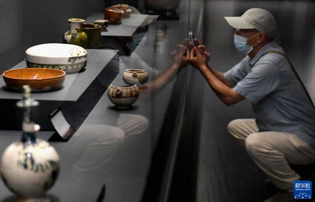 8月30日,參觀(guān)者在鄭州大象陶瓷博物館內拍攝展品。