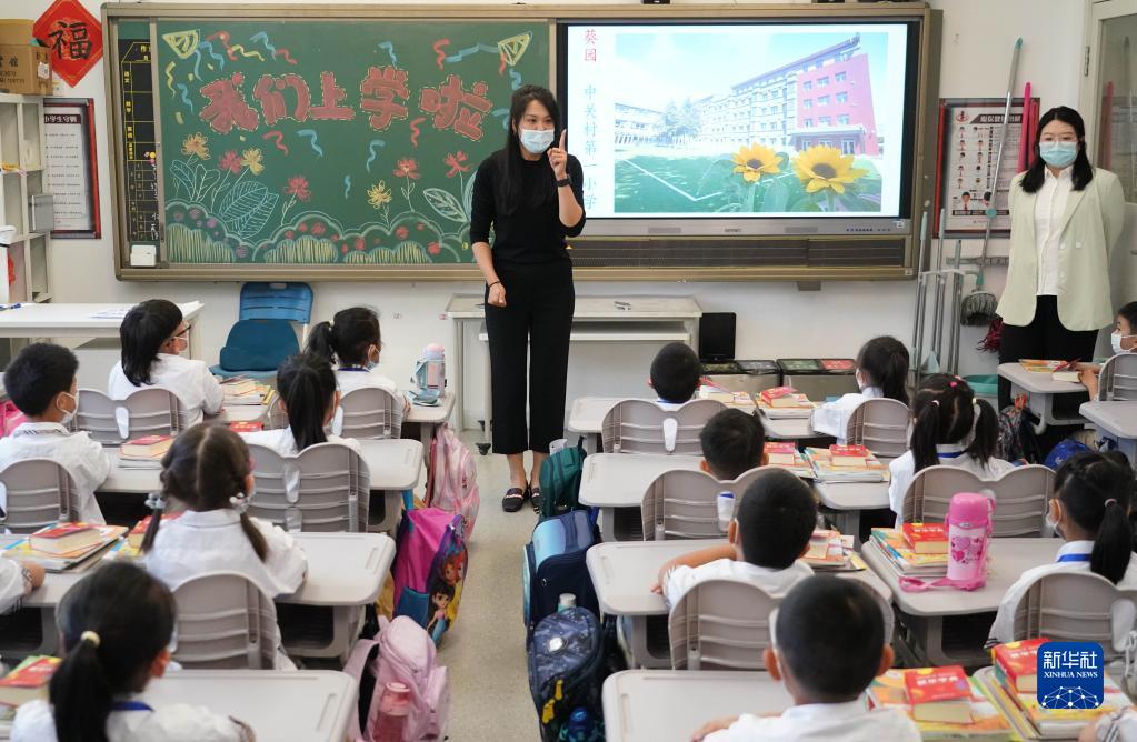 8月31日,在北京市海淀區中關(guān)村第一小學(xué),老師為一年級新生進(jìn)行學(xué)前培訓。