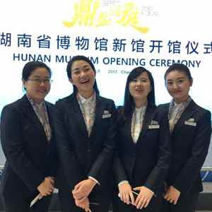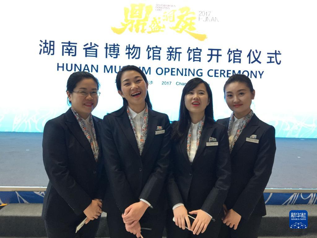 2017年11月,李麗輝(左二)和同事在湖南省博物館新館開(kāi)館儀式上(資料照片)。