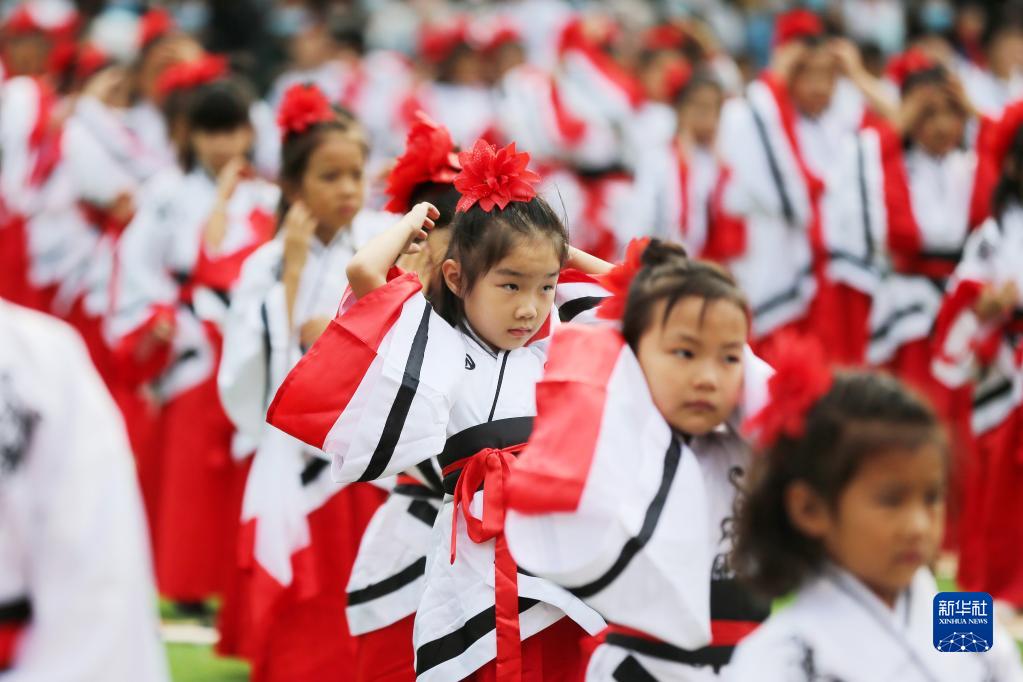 當日,安徽省淮北市黎苑路小學(xué)為一年級新生舉辦傳統“開(kāi)筆禮”儀式。200多名新生身著(zhù)漢服參加“朱砂啟智”“自正衣冠”“啟蒙描紅”“誦讀經(jīng)典”等活動(dòng),體驗傳統文化,開(kāi)啟新的學(xué)習生涯。
