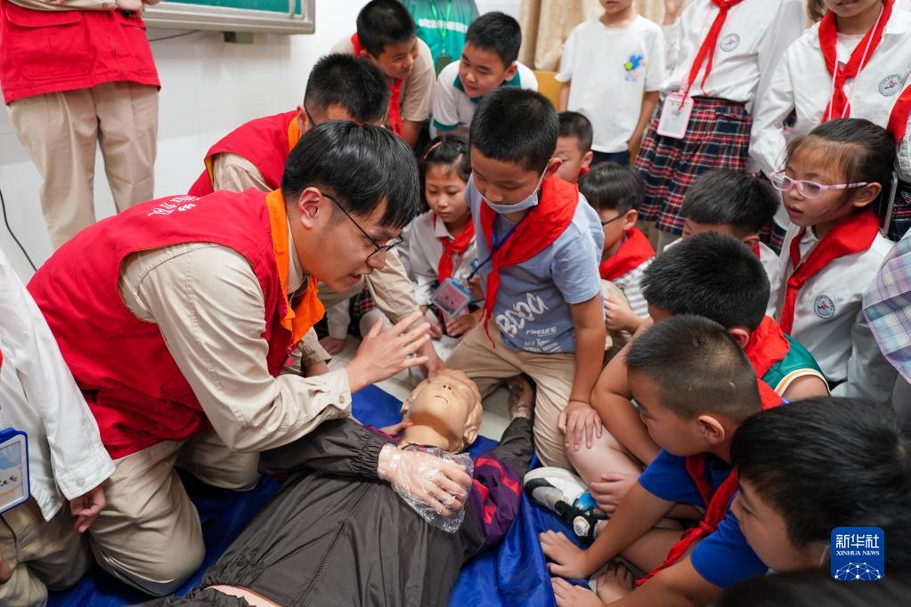 9月1日,江蘇省揚州市寶應縣供電公司的志愿者為寶應縣安宜實(shí)驗學(xué)校的學(xué)生講解觸電急救知識。