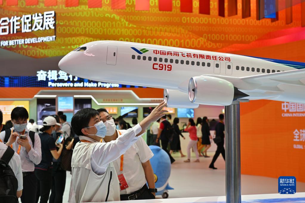 9月1日,觀(guān)眾在國家會(huì )議中心的中國服務(wù)貿易成就展專(zhuān)區內參觀(guān)C919飛機模型。