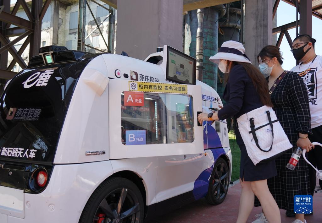9月1日,在服貿會(huì )首鋼園展區,觀(guān)眾在體驗無(wú)人零售車(chē)購物。新華社記者 張晨霖 攝