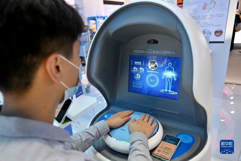 9月1日,觀(guān)眾在體驗免疫力檢測。新華社記者 李鑫 攝