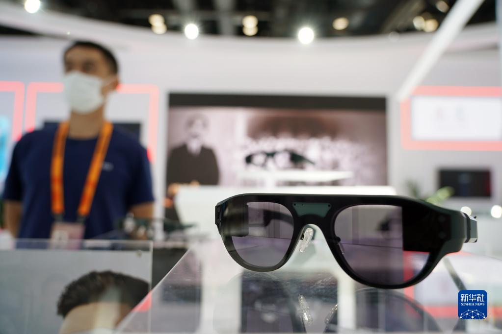 9月1日在國家會(huì )議中心拍攝的在2022年服貿會(huì )上展出的一款AR字幕眼鏡。新華社記者 任超 攝