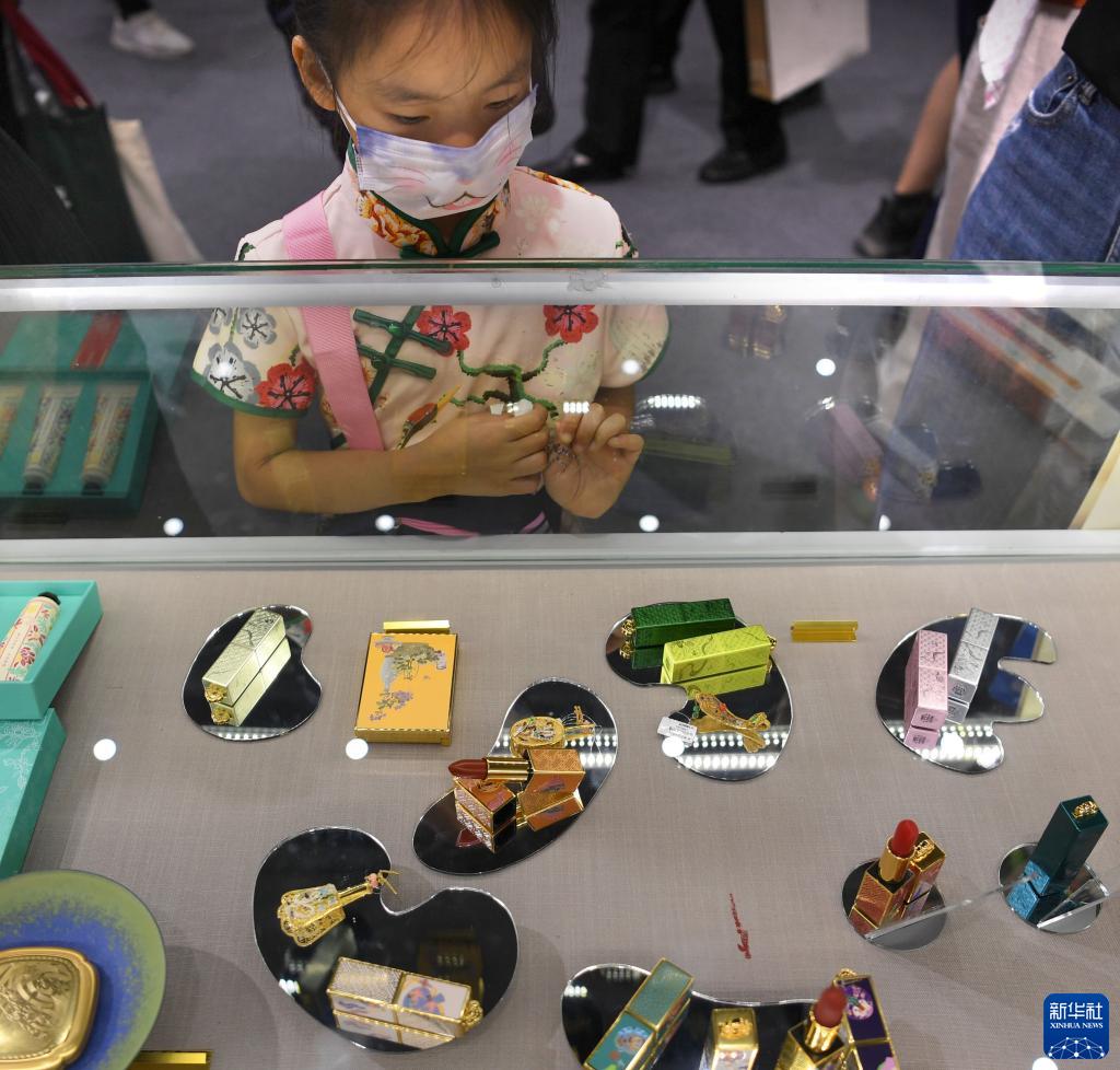 9月1日,小朋友在“博博會(huì )”故宮博物院展區觀(guān)看文創(chuàng )產(chǎn)品。