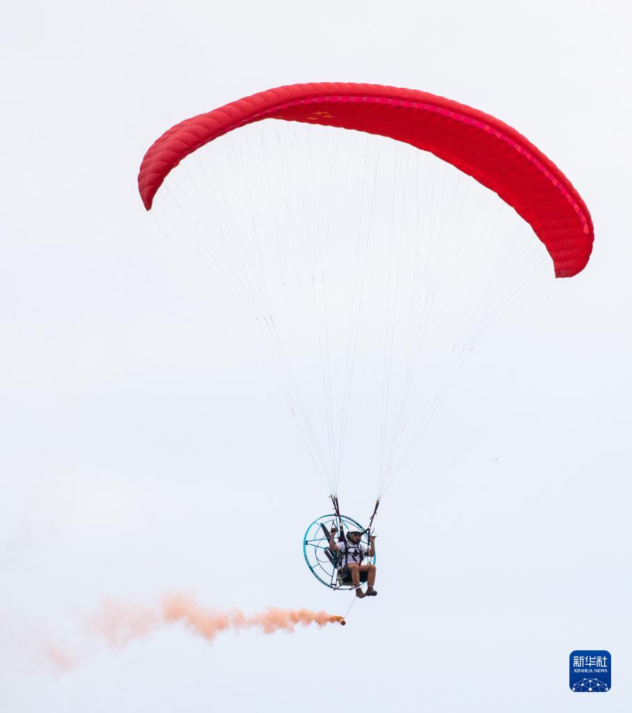 9月1日,在湖南株洲蘆淞機場(chǎng),動(dòng)態(tài)飛行表演隊隊員進(jìn)行表演。