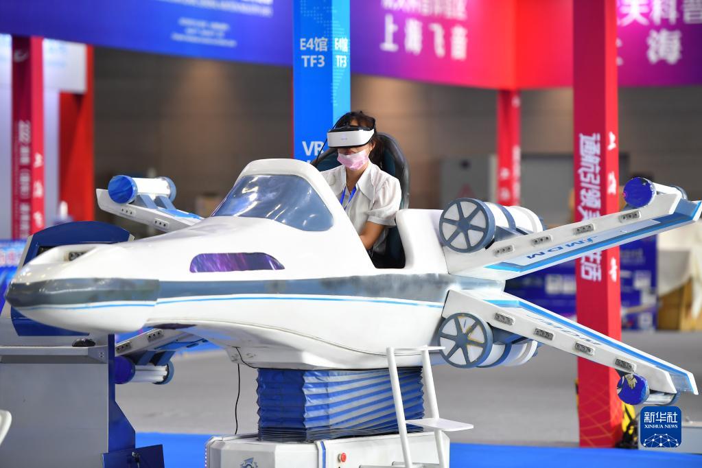 9月1日,在湖南長(cháng)沙國際會(huì )展中心,參觀(guān)者在博覽會(huì )上進(jìn)行VR航天航空體驗。